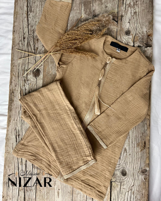 Nous, c'est Hanna et Karim ! ✨ Nous imaginons des tenues uniques où tradition et modernité se rencontrent avec peps, alliant authenticité, confort et une touche de "wahou" pour chaque occasion ! 🎉